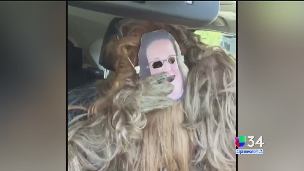 La parodia fue realizada por una presentadora de televisión, quien se vistió de Chewbacca y encima se puso una imagen con el rostro de la mujer que aparece en el video original.