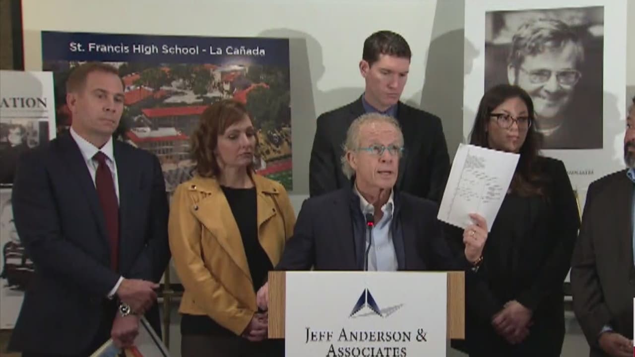 Este viernes, un grupo de abogados presentó la querella de una de las presuntas víctimas del sacerdote Christopher Kearney, quien daba clases en la escuela que está ubicada en La Cañada. La demanda también es en contra de la Arquidiócesis de Los Ángeles. "Esto nos ayudará a buscar información del encubrimiento que se ha hecho", manifestó Manuel Vega.