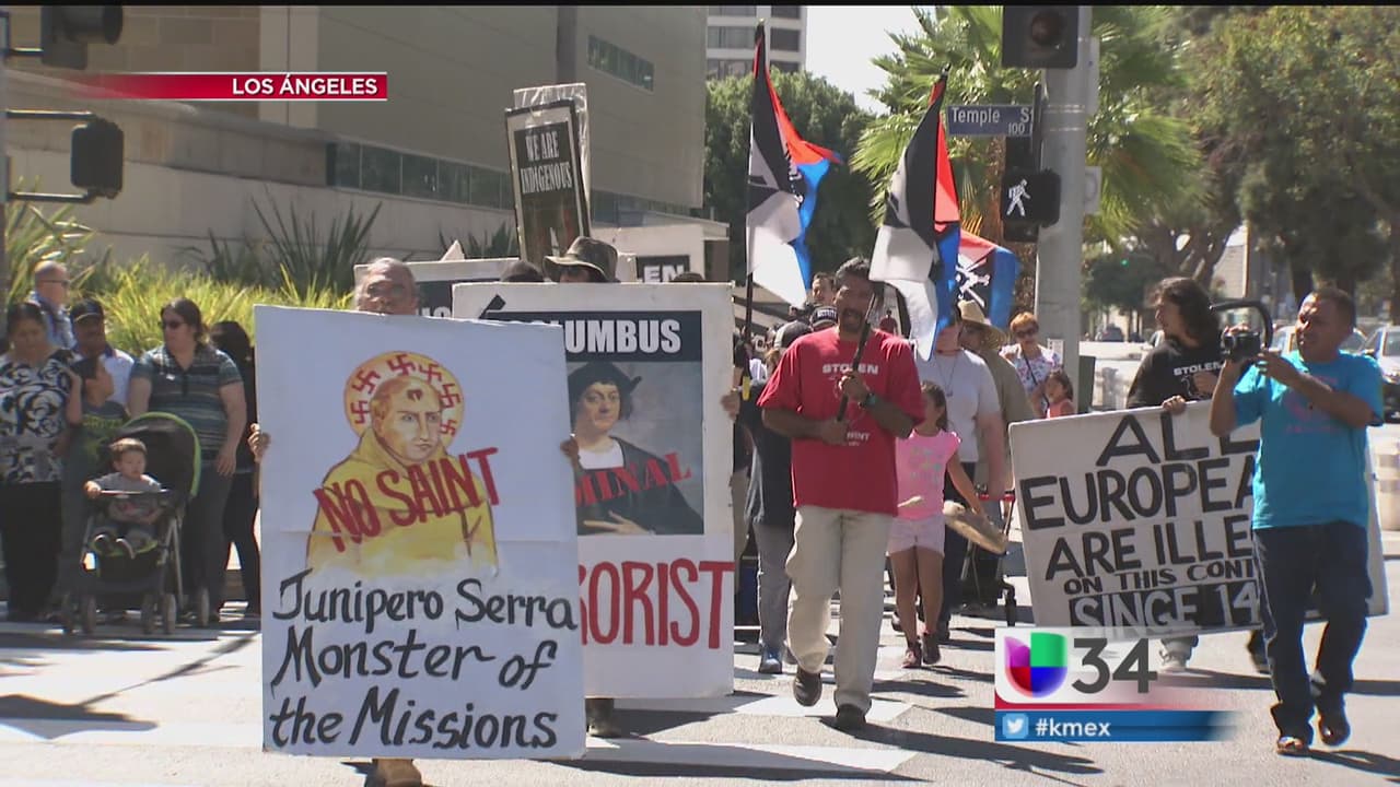 Un grupo de personas protestaron contra lo que denominaron genocidio contra la población indígena con la llegada de los europeos.