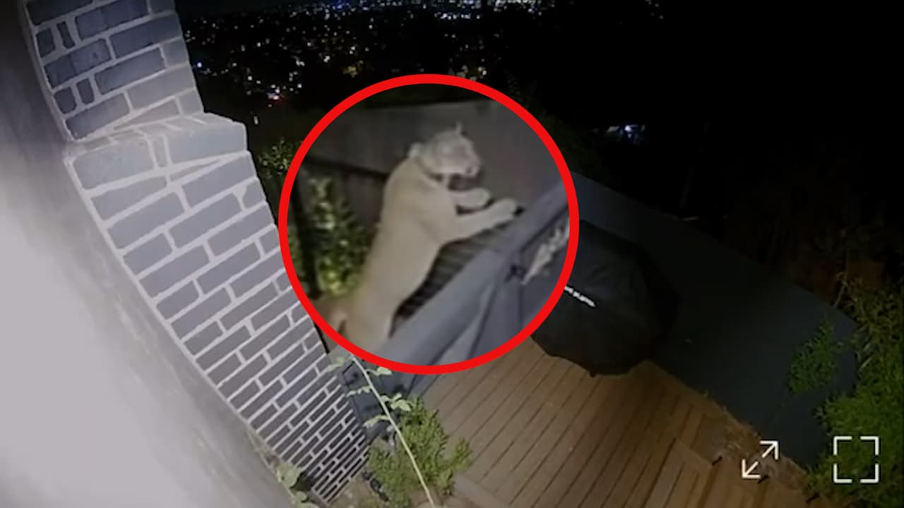 Los dueños de la casa se sorprendieron al ver las imágenes de lo que pasó durante la noche en su patio trasero, compartiendo los videos del felino que deambula por Los Ángeles en redes sociales.