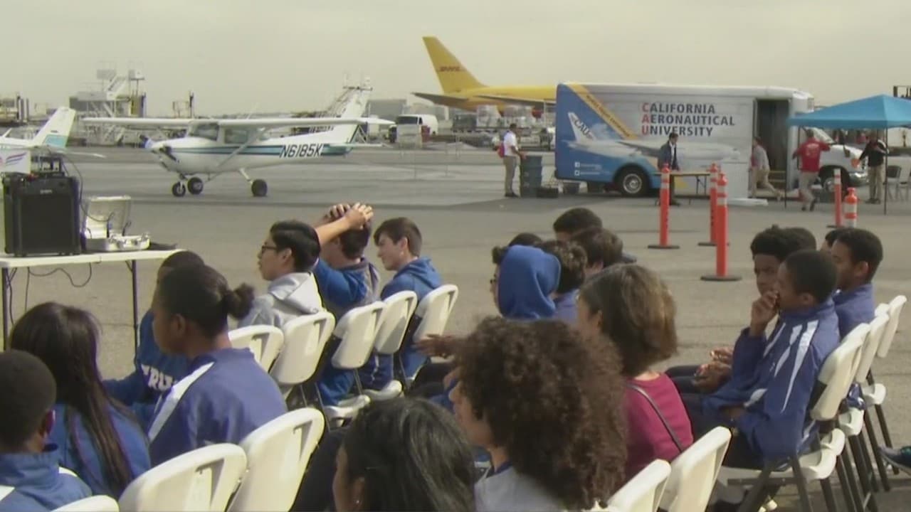 Cientos estudiantes del Distrito Escolar Unificado de Los Ángeles participaron este miércoles en un evento que se realiza cada año en el Aeropuerto Internacional de Los Ángeles (LAX), el cual busca informar sobre las oportunidades profesionales en la industria aeronáutica y aeroespacial.