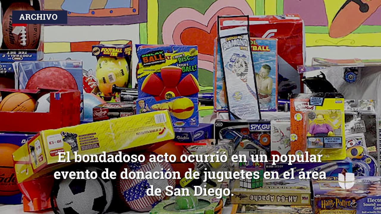LOS ÁNGELES, California.- Voluntarios de un centro de recolección de juguetes en San Diego, al sur de California, celebran la histórica donación de 80,000 dólares en regalos para niños menos afortunados.