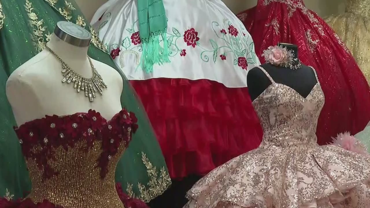 Regalan vestidos de grado: la estrategia de los comerciantes de la calle 4 en Santa Ana para atraer clientes