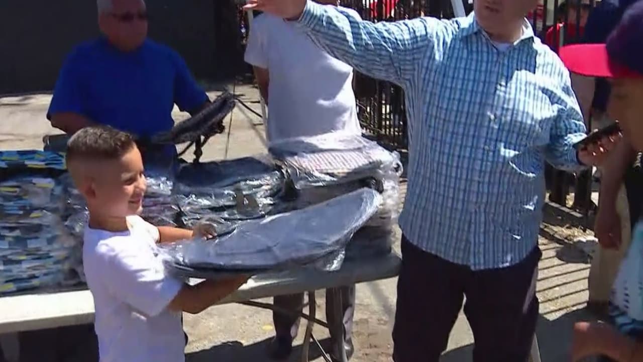 Regalando mochilas a niños de bajos recursos, rinden homenaje al fallecido oficial de Los Ángeles Juan Díaz