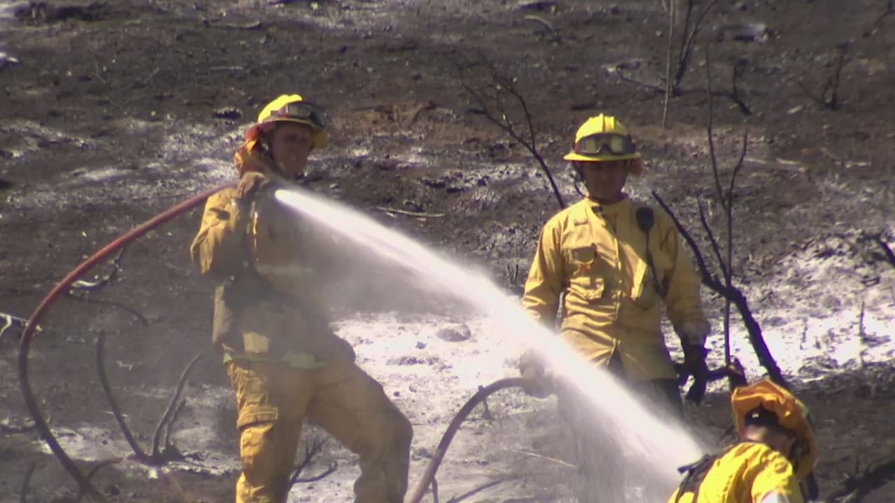 Decenas de bomberos combatieron por horas el fuego en Baldwin Hills, barrio de Los Ángeles. Las autoridades reportan que se quemaron dos acres y que no hubo heridos.