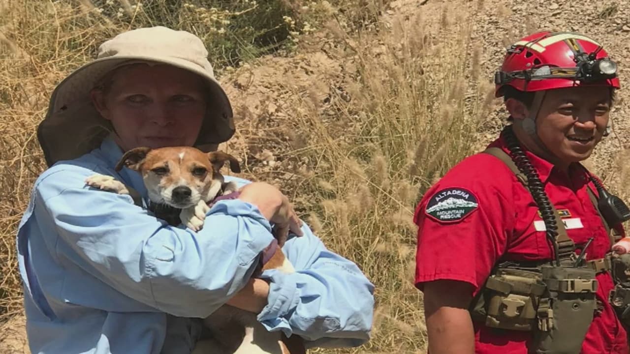 Momentos de angustia vivió una mujer que estaba haciendo senderismo con sus mascotas cuando una de ellas cayó por un terraplén en el Bosque Nacional Ángeles. Tres equipos de rescatistas llegaron hasta el lugar, pero por más que buscaban no lograban dar con la perrita. Gracias a otros senderistas, supieron que había un perro ladrando no muy lejos de allí, y pudieron dar con ella.