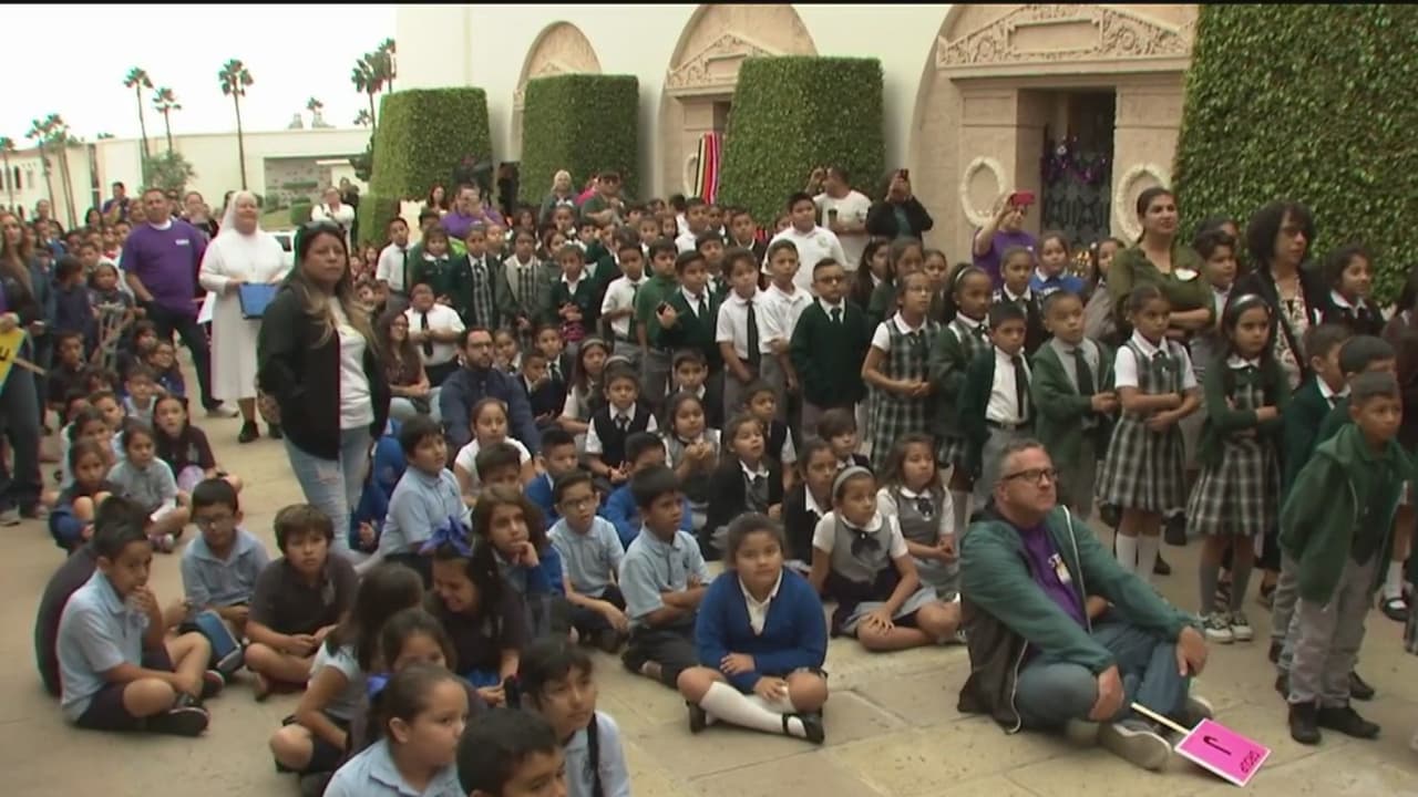 Jóvenes de 10 escuelas del este de Los Ángeles llegaron al cementerio Calvary para aprender sobre esta tradición mexicana. El padre Christopher Bazyouros, quien estuvo en el evento, señaló que los asistentes participarán en la creación de altares para los muertos.