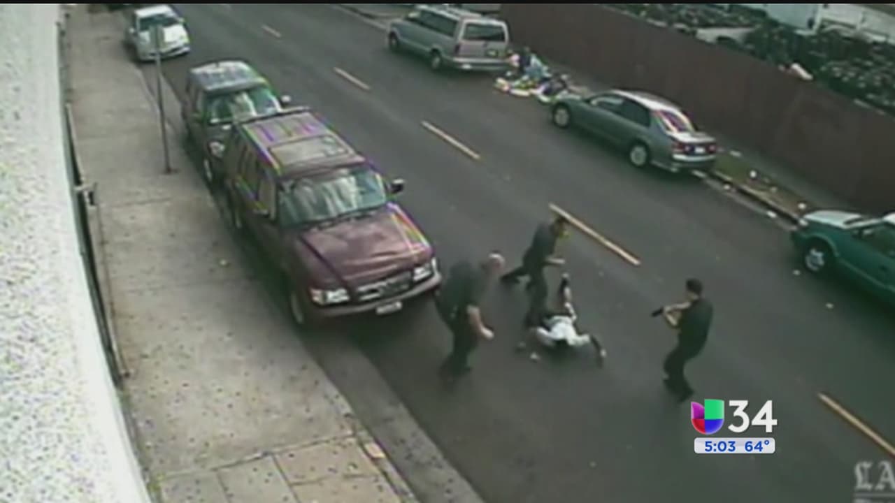 La familia de un hombre que fue arrestado hace dos años vio este lunes por primera vez las imágenes del momento en el que varios agentes de la LAPD lo someten violentamente para detenerlo.