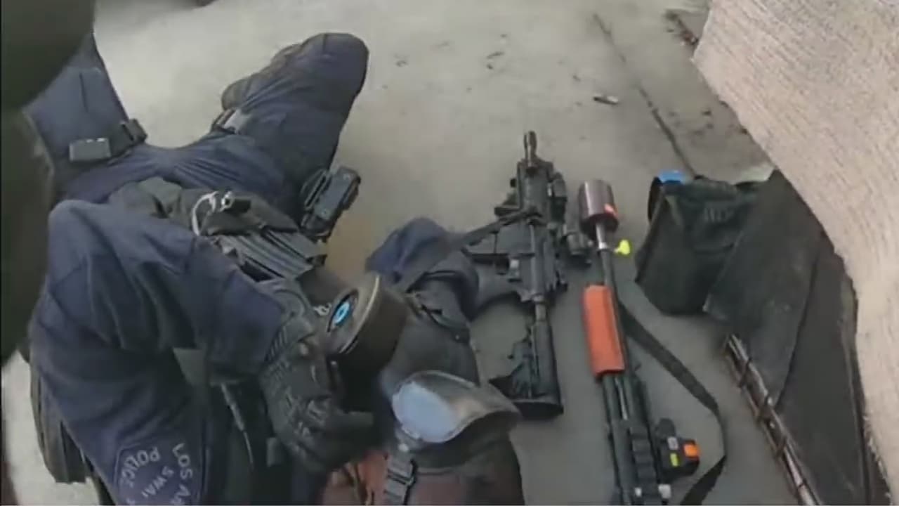 Revelan imágenes del tiroteo en el que un oficial del equipo de tácticas especiales de Los Ángeles fue herido