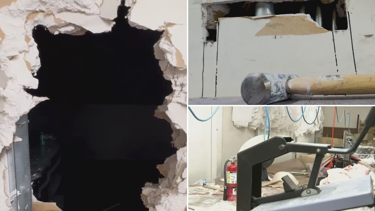 Los delincuentes llegaron a un edificio del Distrito de la Moda de Los Ángeles, entraron a uno de los negocios y con mazos rompieron las paredes para desplazarse a los otros, robando maquinaria, mercancías, cajas fuertes e incluso los ahorros de algunos propietarios, lo que representa un fuerte golpe para su economía.
