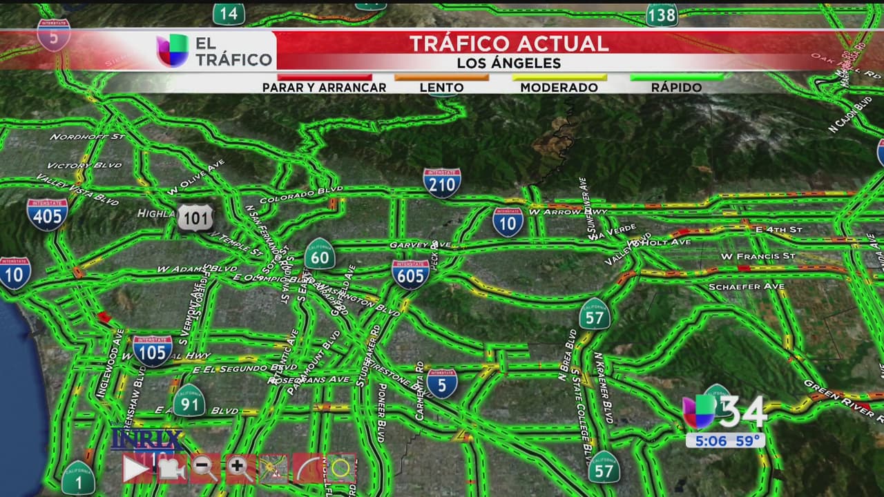 Un accidente en 5 Norte en la entrada al Valle de San Fernando está obstruyendo al menos uno de los carriles de la vía. Se registra otro accidente sobre la 60 Oeste que está provocando lentitud en el área.