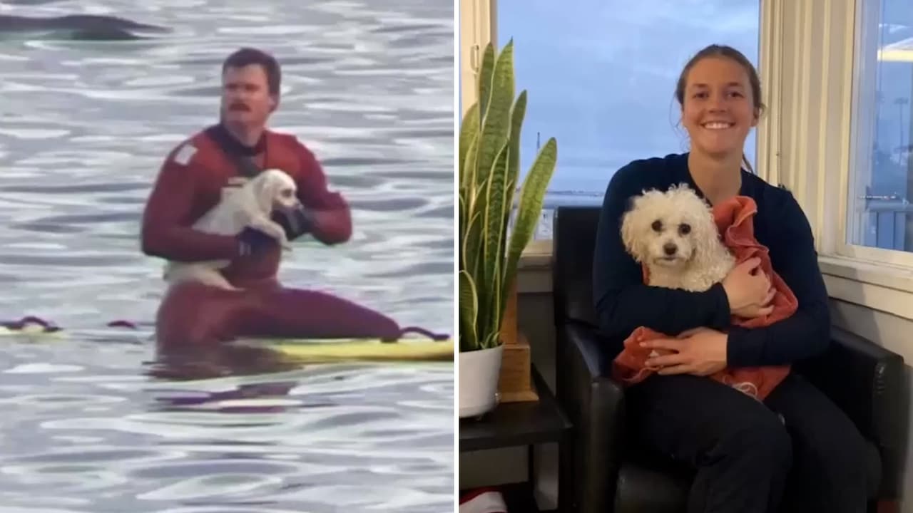 Los salvavidas en Long Beach rescataron a un pequeño perro que estaba perdido y corrió hasta nadar en el mar el sábado en la tarde. Sin embargo, gracias al trabajo de los rescatistas, lograron subirlo a una tabla de rescate y luego lo llevaron de regreso al perro con su dueño.