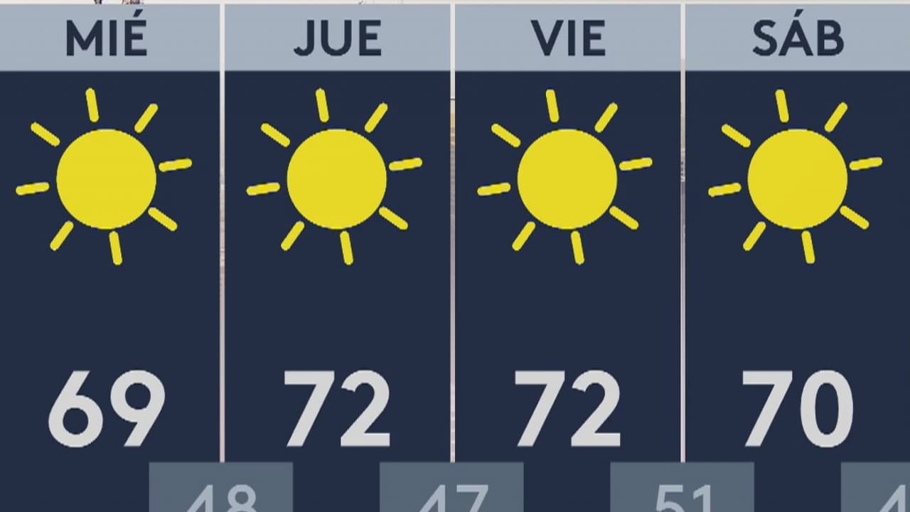 De acuerdo con el pronóstico, el mercurio alcanzará como máximo los 69 grados Fahrenheit, con sensaciones térmicas similares. Por otro lado, se descarta cualquier probabilidad de precipitaciones durante la jornada.
