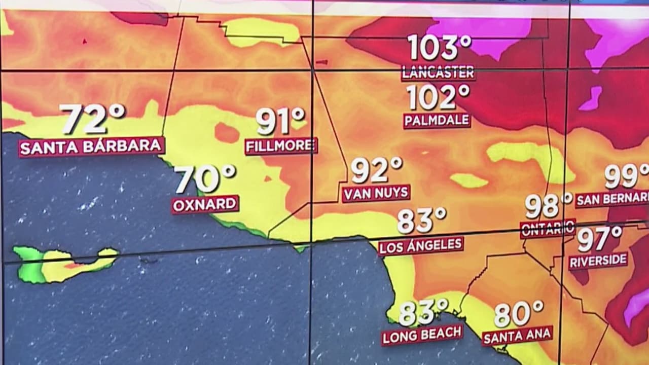 Los avisos de calor se mantienen en gran parte del sur del estado. Aunque en Los Ángeles la temperatura ha comenzado a moderarse, en otras zonas el termómetro marca entre 95 y 100 grados Fahrenheit. La noche estará un poco más fresca.