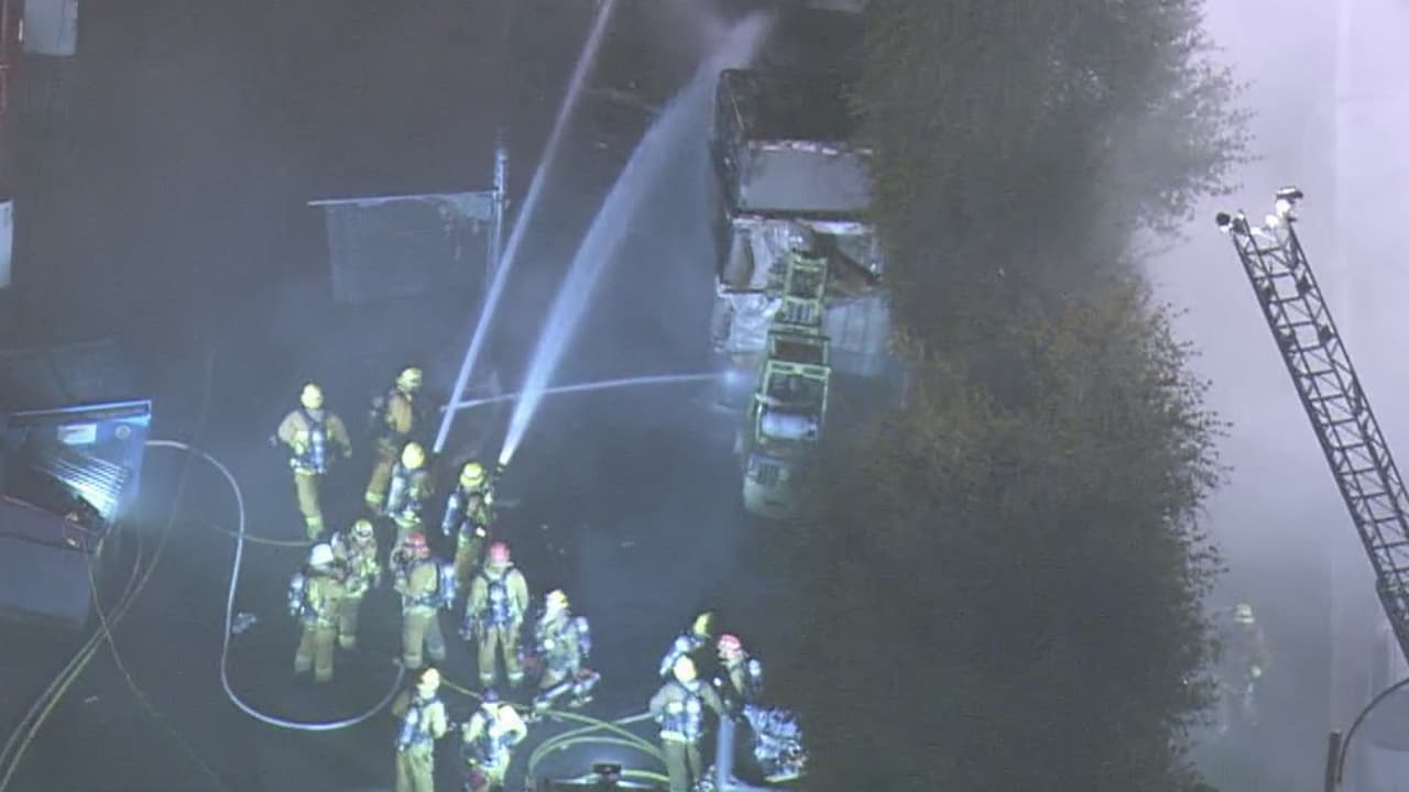 Las autoridades intentan sofocar el fuego que dejó los cables del tendido eléctricos caídos, por lo que se pide precaución para transitar por la zona. Hasta ahora no se han reportado víctimas.