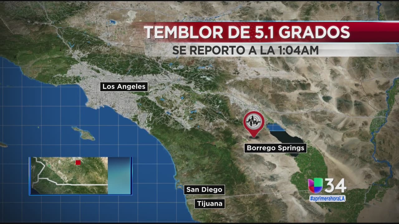 El sismo de 5.2 grados se registró en torno a la 1:04 am y su epicentro se ubicó a 14 millas al noreste de Borrego Springs.