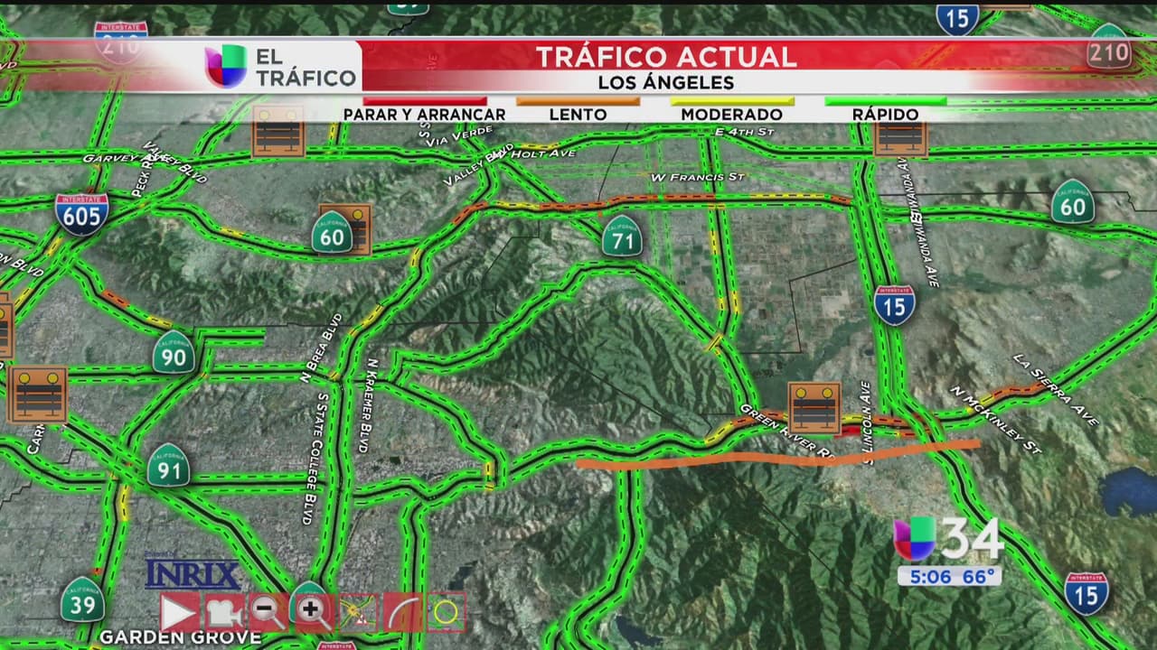 A pesar de que no se registra ningún percance, el radar muestra tráfico lento en la 91 Oeste en el área de Corona.