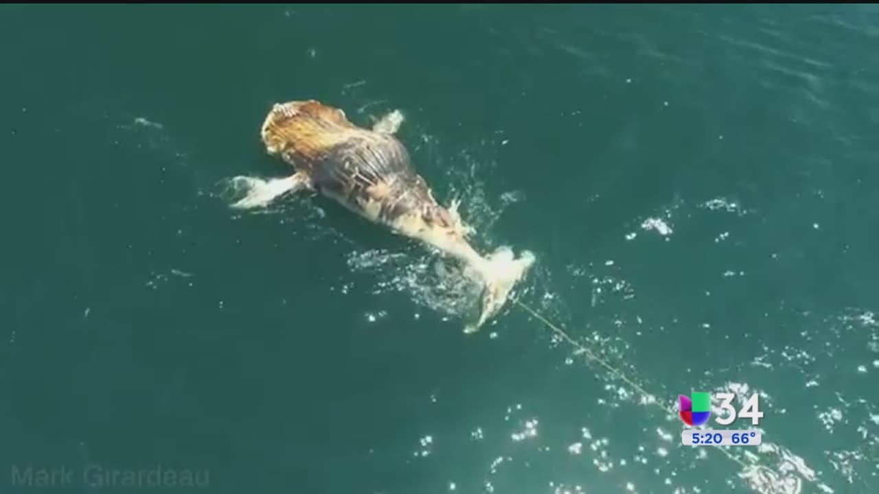 El cadáver de la ballena Wally fue finalmente sepultado luego de remolcarla más de seis veces a altamar.