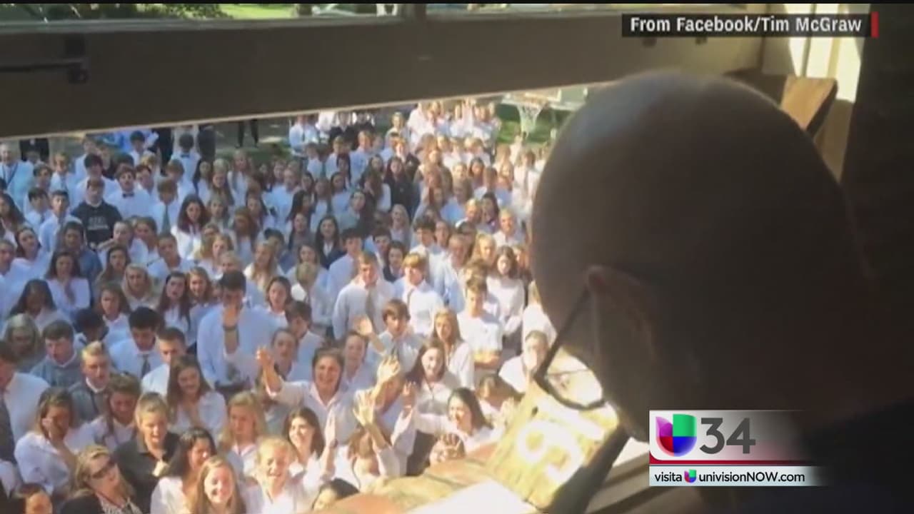 Cientos de estudiantes se dieron cita para darle a una serenata a su profesor Ben Ellis, en Nashville, quien libra una lucha contra el cáncer de esófago.