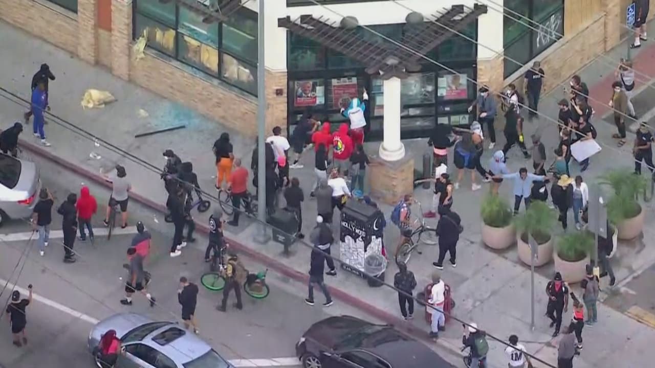 En Hollywood, una persona con un martillo se disponía a romper las ventanas de un establecimiento, pero buenos samaritanos que se movilizaban pacíficamente se interpusieron y no lo permitieron. Por otra parte, algunos manifestantes que protestaban en la zona de Westwood fueron arrestados una vez comenzó el toque de queda.