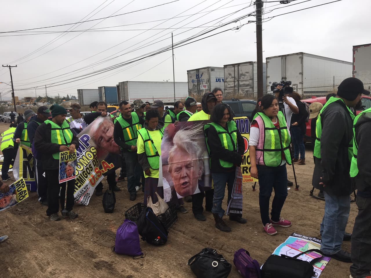 Este grupo de cerca 50 personas estaba en Tijuana, pues asegura que en San Diego era difícil hallar un sitio para protestar. Sin embargo, ellos tampoco lograron ver bien lo que sucedía, pues la Patrulla Fronteriza estacionó un grupo de camiones de 18 ruedas entre la barda metálica que separa a Tijuana y el pie de los prototipos. Con eso bloqueó la visibilidad desde el lado mexicano.