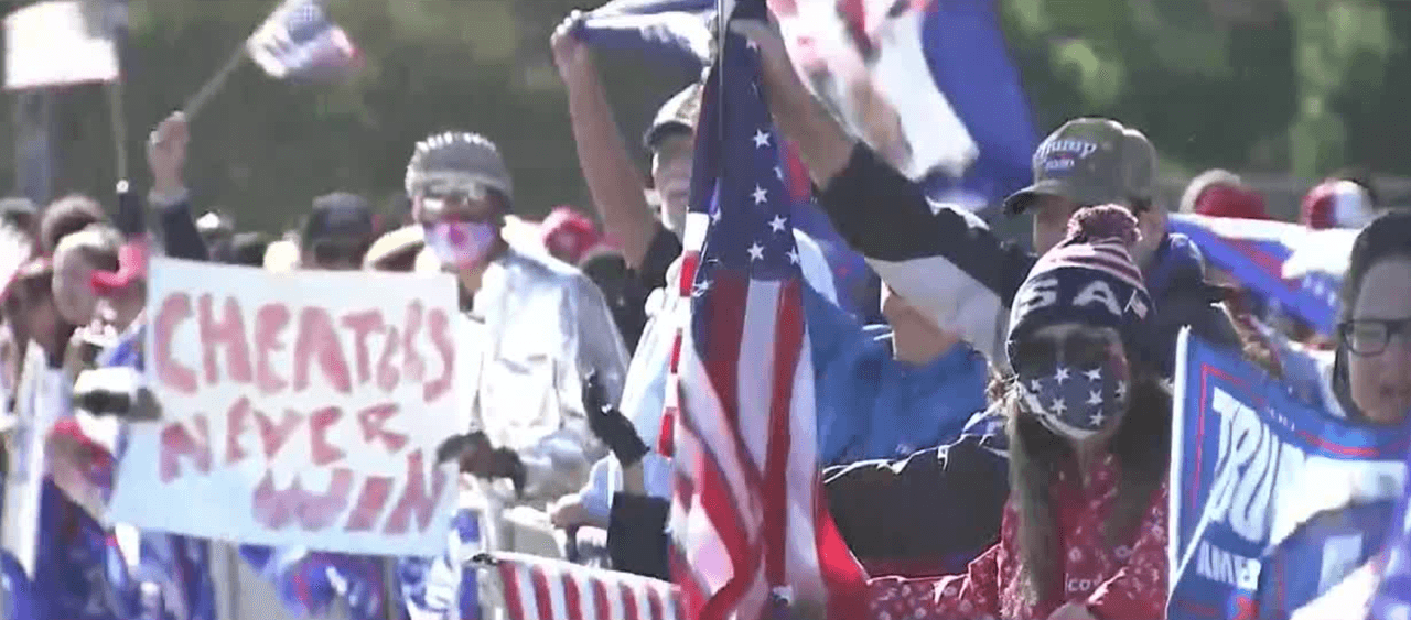 Con banderas, sombreros y pancartas, decenas de personas salieron este domingo a las calles para expresar su descontento por el triunfo de Joe Biden. Alegan que el presidente fue el ganador de los comicios. Por otra parte, seguidores demócratas en todo el país celebran la victoria de Biden y Harris.