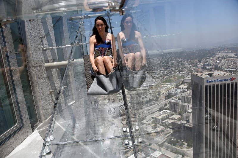 La rampa transparente 'Skyslide' fue inaugurada el 25 de junio y se ha convertido en una popular atracción en Los Ángeles, si bien una mujer ya presentó una demanda contra el propietario y la empresa que opera la instalación porque dice que se rompió un tobillo al deslizarse.