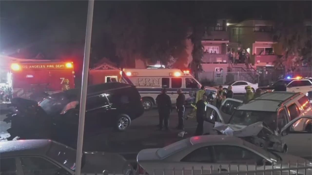 El aparatoso choque ocurrió poco antes de la media noche en North Hills cuando dos camionetas deportivas se estrellaron en la calle Nordhoff.