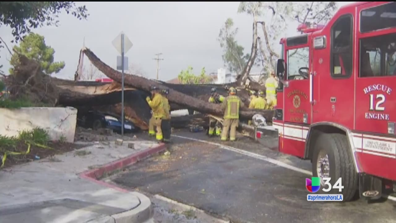 Árbol gigantesco cae sobre vehículo y deja una persona muerta en Winnetka, Valle de San Fernando