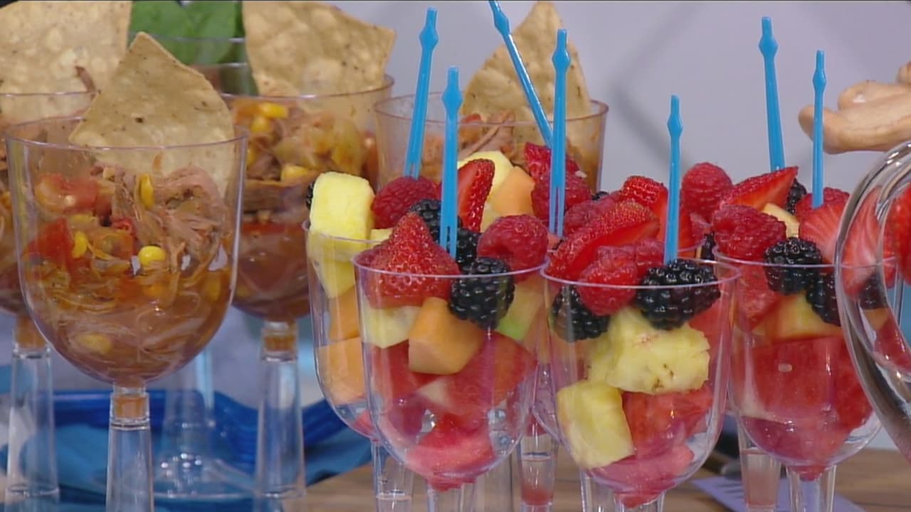 El chef Juan Mondragón te recomienda optar por recetas con frutas y verduras, así como por envases de copas para que sean más fácil de comer para los asistentes al evento. Ensalada de espinacas con queso y almendras, sándwich de tinga de res, y guacamole, entre los bocadillos más ricos para compartir.