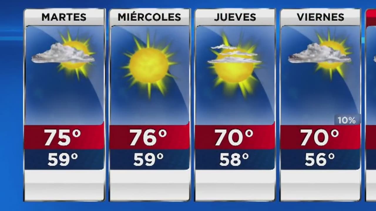 A pesar de la presencia de algunas nubes, el día estará mayormente soleado. La temperatura máxima será de 75 grados, acompañada de viento calmado y sin probabilidades de lluvia.