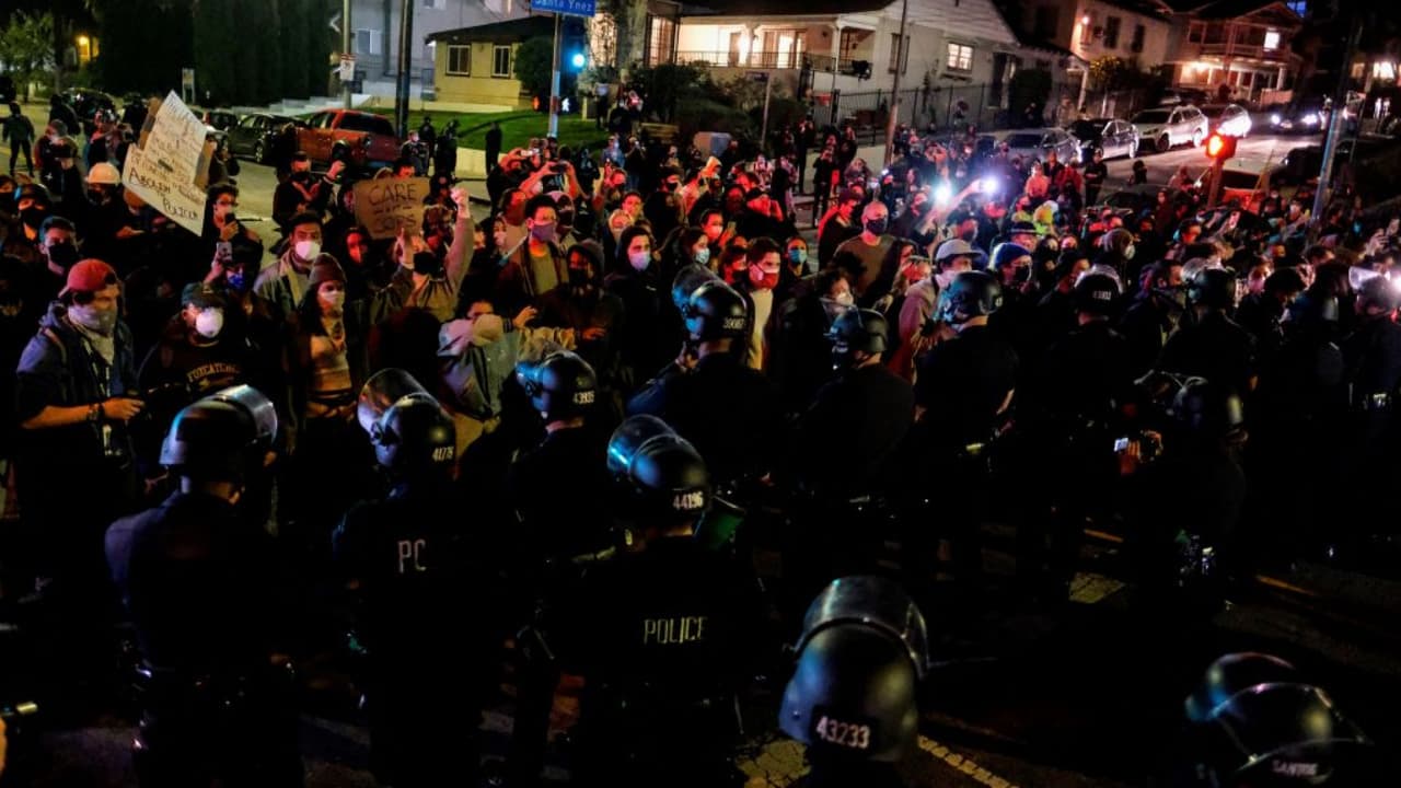 El Departamento de Policía de Los Ángeles declaró la reunión como ilegal en el área de Lemoyne Street y Park Avenue en Echo Park debido que la " gran multitud que usaba luces de alta intensidad en un intento de cegar a los oficiales", según el mensaje del LAPD en su cuenta de Twitter.