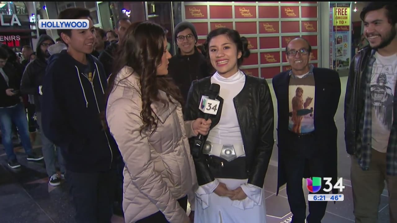 Aficionados de la saga de “Star Wars” salieron en masa para ver el estreno de la cinta “The Force Awakens”.