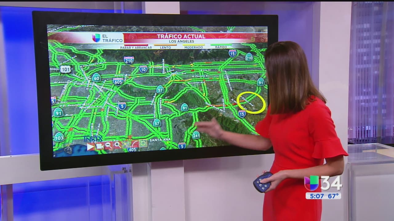 En el centro de Los Ángeles se encuentra un auto varado obstruyendo el primer carril de la autopista 5 Sur a la altura de la 110. Además, se registra lentitud sobre la 91 Oeste.