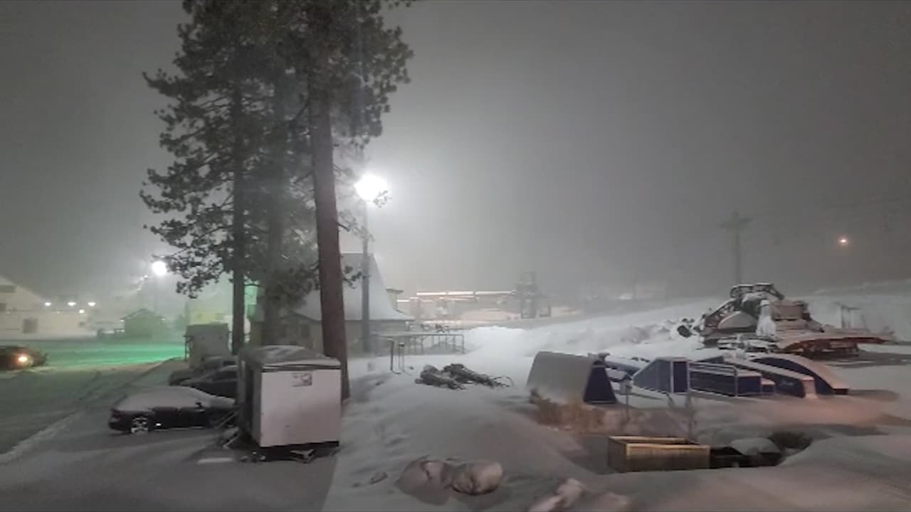 Medio pie de nieve fresca, 6 pulgadas, ya ha caído en el Snow Valley Mountain en las montañas de San Bernardino, tras la llegada de la primera tormenta invernal de la temporada al sur de California.