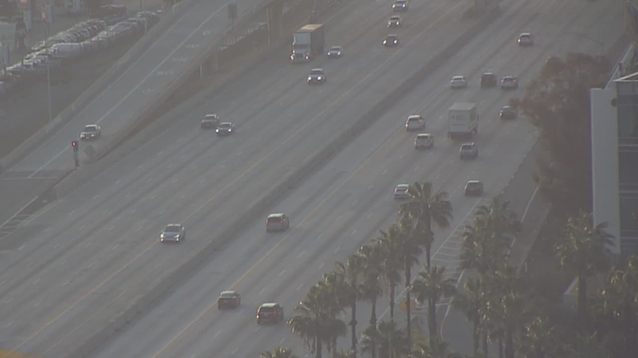 Tráfico fluido y rápido en la autopista 405 de Los Ángeles en la mañana de este martes