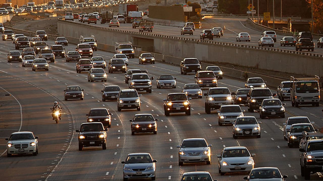 Tráfico lento en la autopista 405 de Los Ángeles en la mañana de este jueves