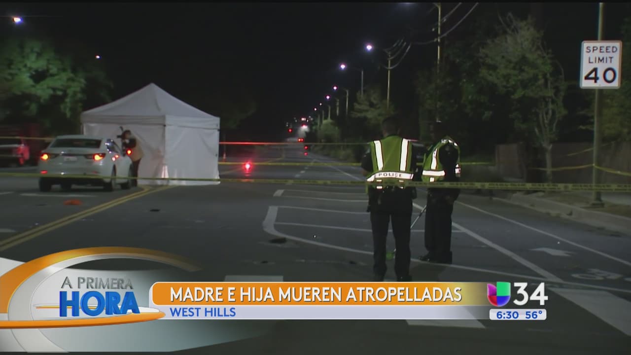 La policía en la comunidad de West Hills en el sur de California investiga un mortal accidente que cobró la vida de una mujer, su hija y su perro. Las víctimas fueron impactadas por un carro cuando cruzaban una vía peatonal.
