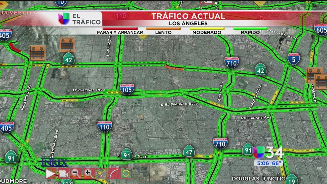 En la zona de Glendale hay un objeto que está obstruyendo uno de los carriles sobre la 134 Este a la altura de la autopista 2. Tráfico lento sobre la 105 Oeste.