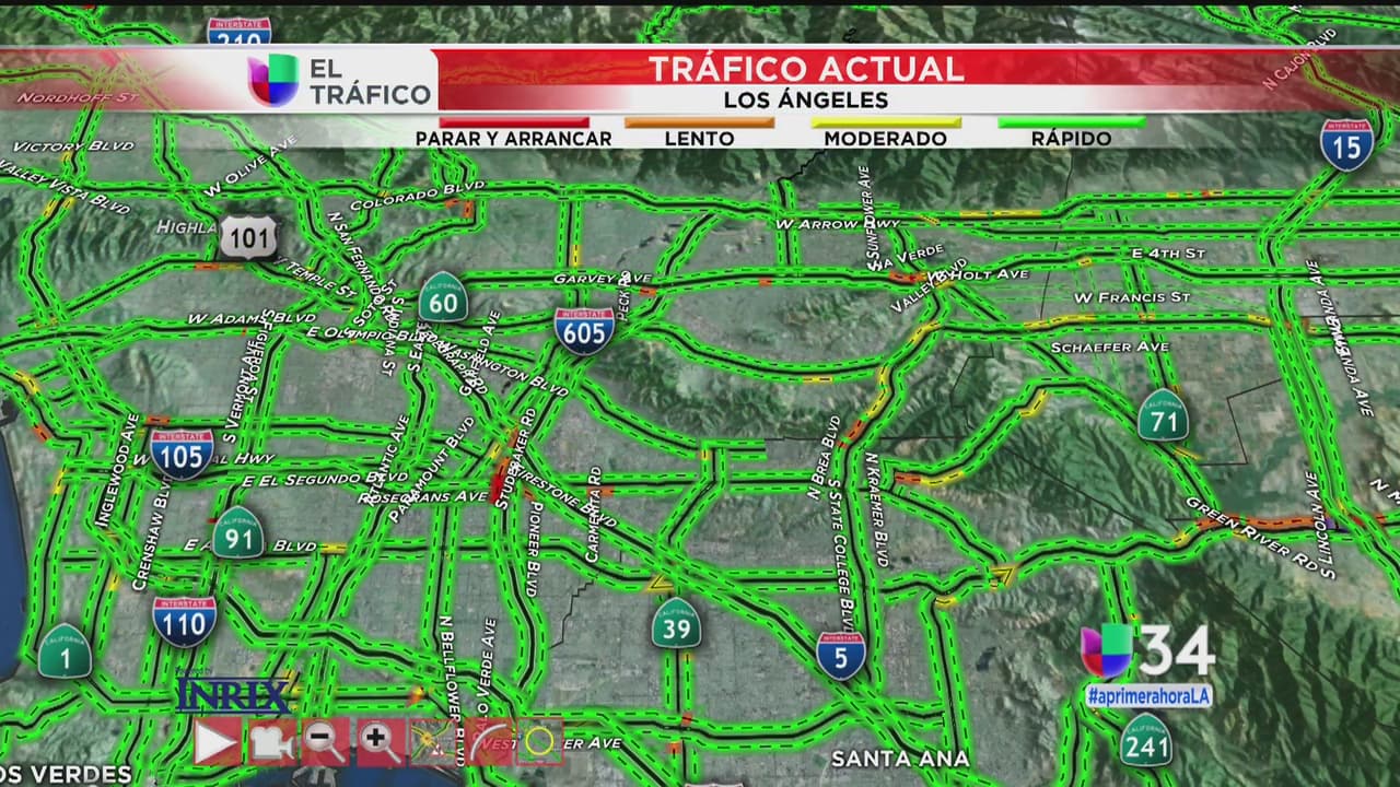 Un accidente sobre la 10 Oeste está obstruyendo por lo menos uno de los carriles de la vía provocando lentitud en esa área. El tránsito sobre la 605 Sur es complicado.
