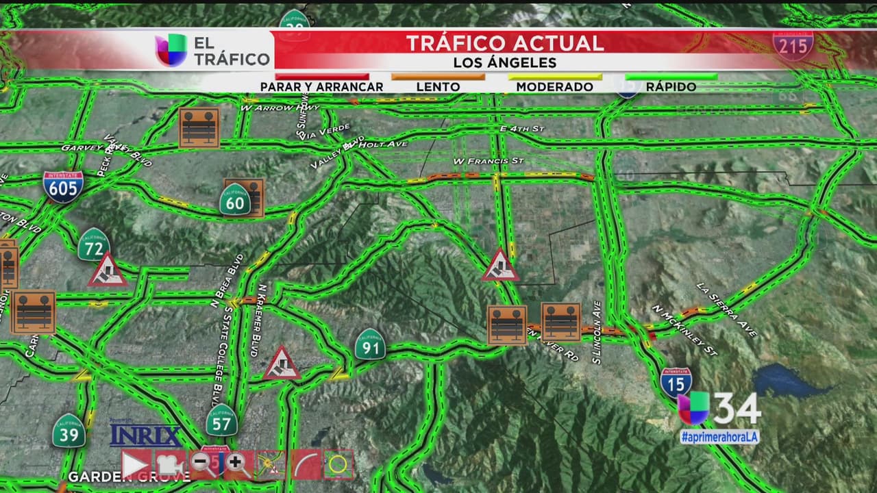 Los radares muestran que la 91 Oeste a la altura de la autopista 15 presenta tránsito lento. Un percance afecta la circulación en la 5 Sur a la altura de la autopista 210.