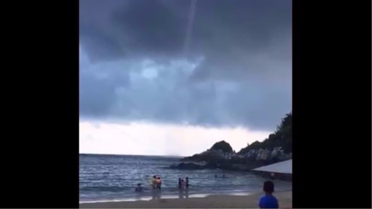 Tromba marina asusta a bañistas en una playa de México