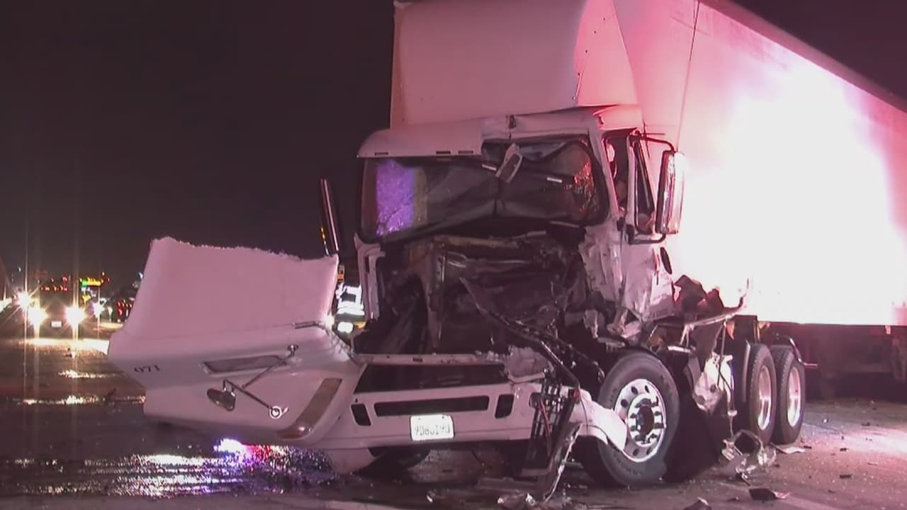El aparatoso choque, que involucró un camión y otros tres vehículos, ocurrió la madrugada del jueves cerca de la salida de la calle Citrus. Los bomberos se encuentran en la escena y autoridades recomiendan a los conductores tomar rutas alternas.