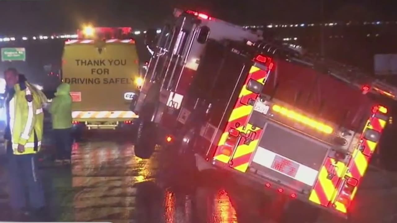 Un camión de bomberos estuvo a punto de caerse a un pozo en San Bernardino