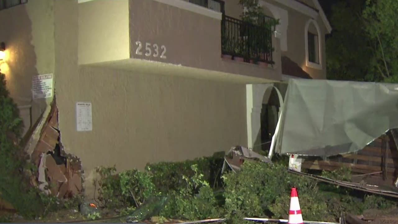 Según testigos, el hombre conducía en sentido este cuando chocó contra un vehículo estacionado y posteriormente contra un complejo de apartamentos, causando graves daños. Ahora las autoridades buscan al sospechoso que dejó abandonada la parte trasera de su camión en la zona.