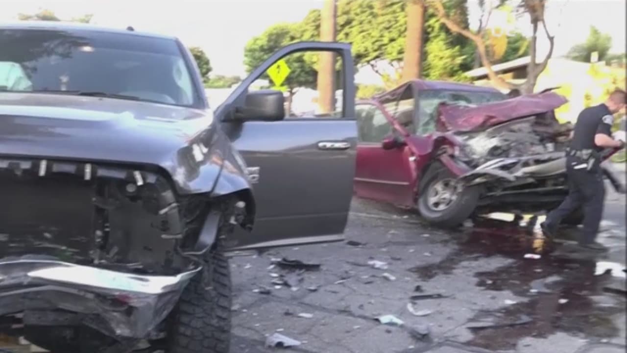 Un conductor herido y caos vehicular por un fuerte accidente en Fullerton, California