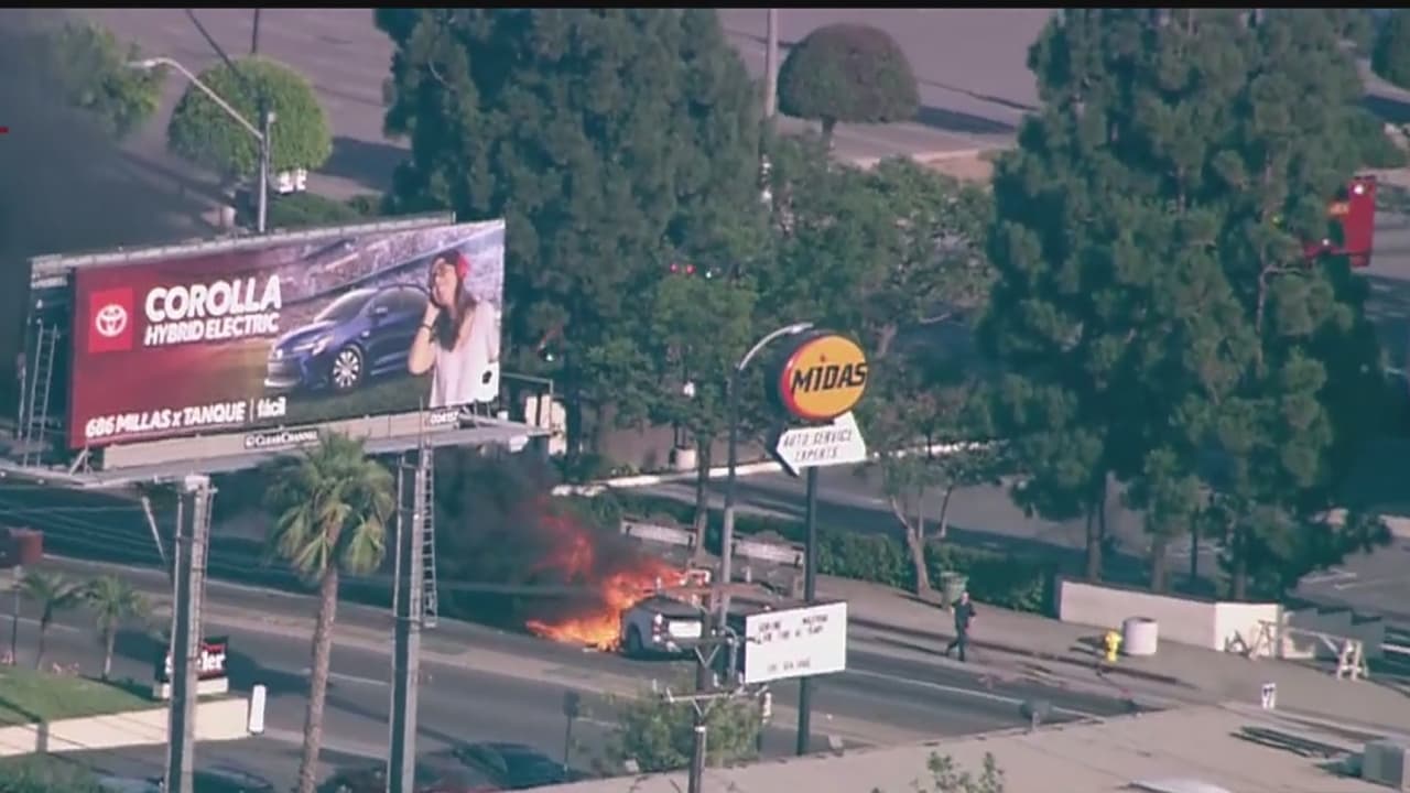 Un conductor que huía de la policía termina en medio de las llamas tras chocar su auto en Inglewood