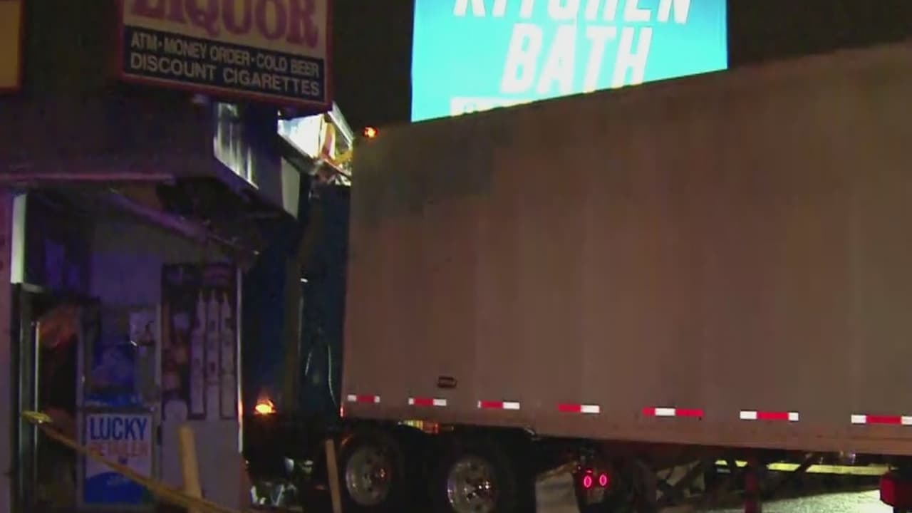 Una persona gravemente herida y un camión de carga dentro de una tienda de conveniencia tras choque en el área de North Hollywood en Los Ángeles.