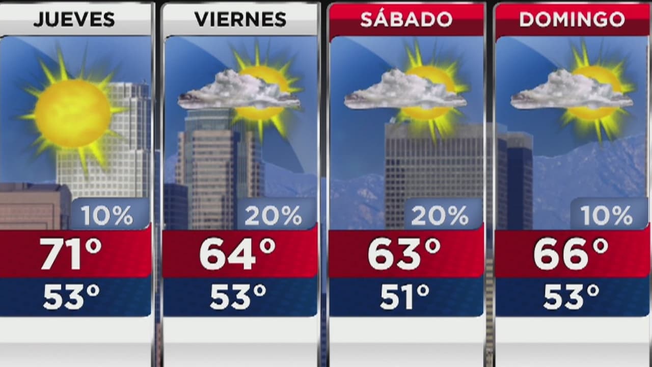 Para esta jornada se pronostican temperaturas máximas de 71 grados Fahrenheit, mínimas de 53, cielos despejados y un 10% de posibilidad de precipitaciones. Por otro lado, se pronostica que algo de nubosidad regrese el viernes al sur de California.