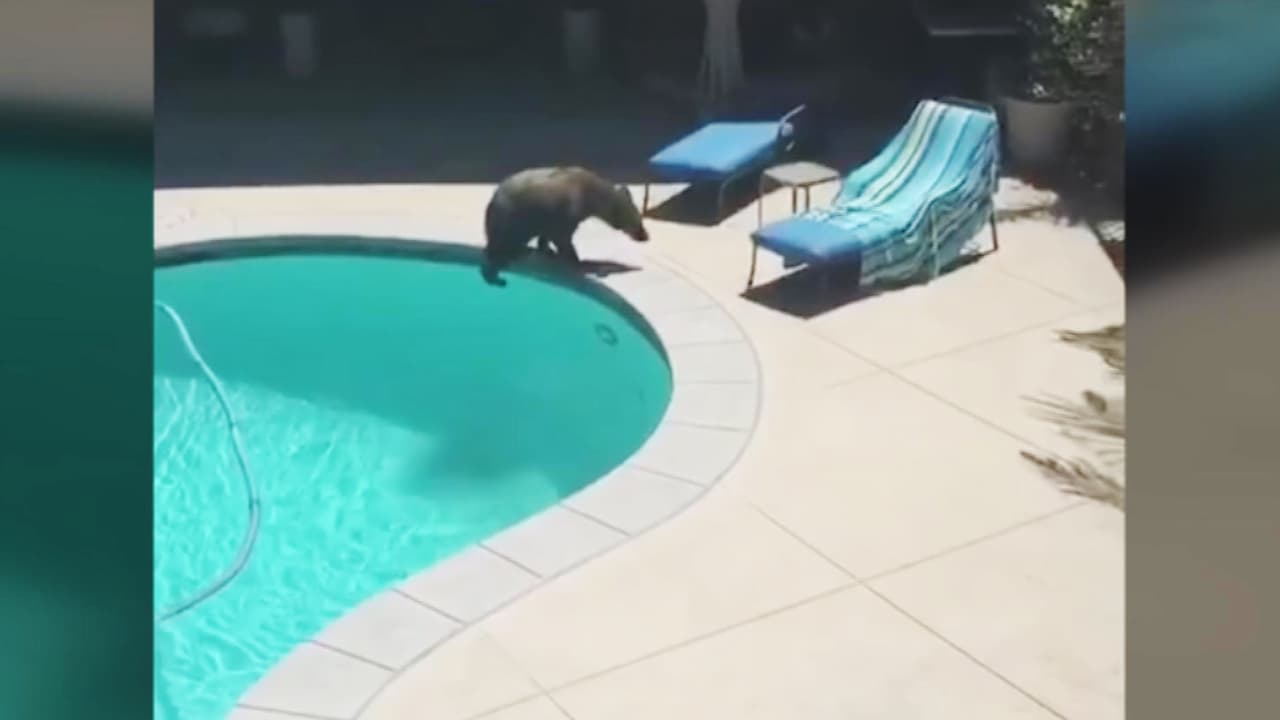Un oso no se resiste a la tentación de una piscina y desata el pánico en un vecindario de Los Ángeles